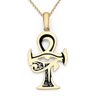 Eye of Horus Pyramid Pendant Necklace in Solid Gold with Blue Enamel, Egyptian Fine Jewelry